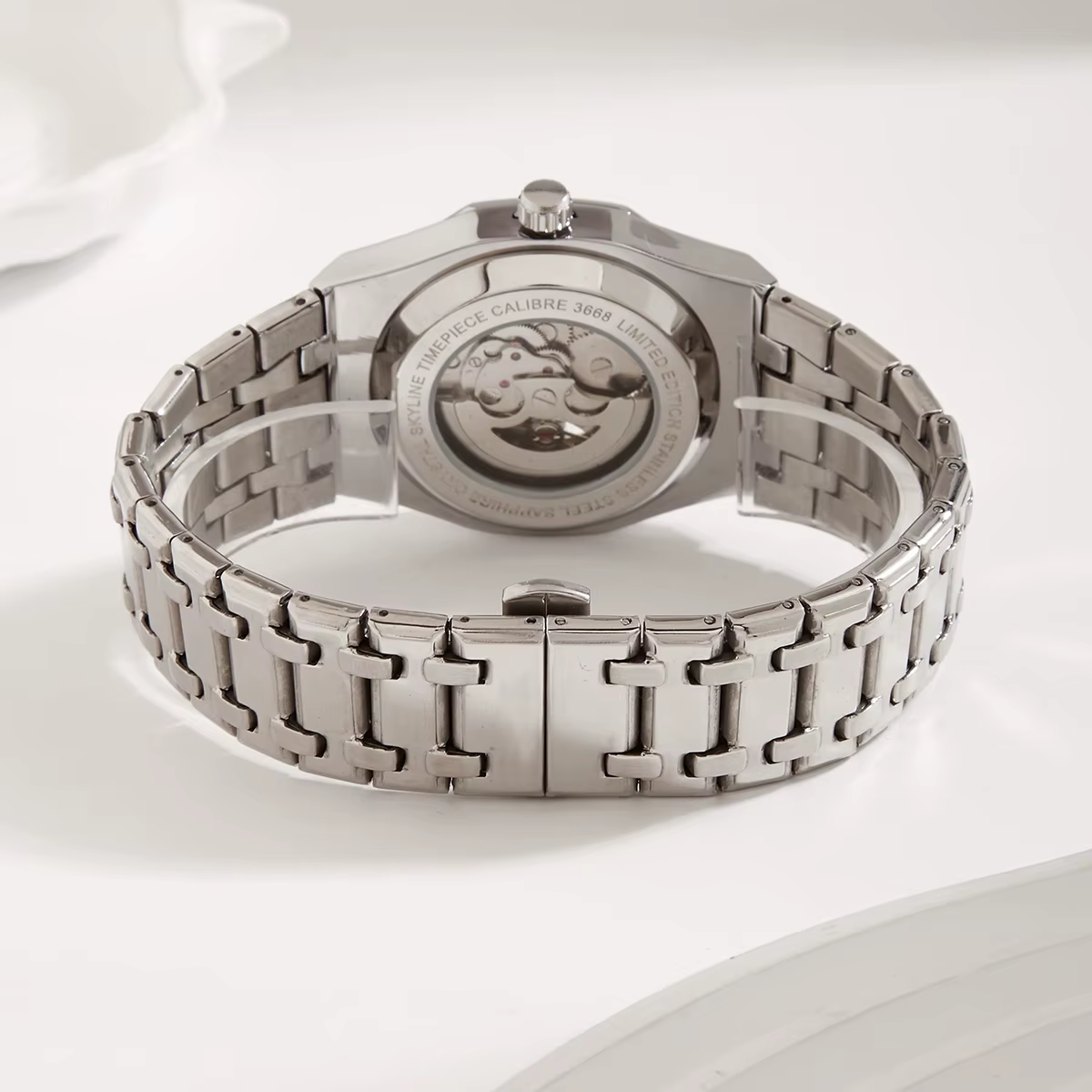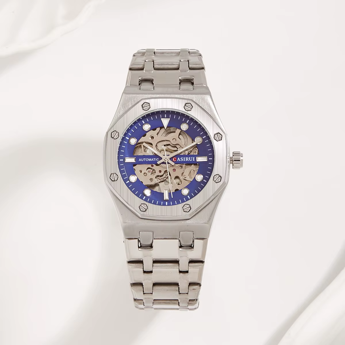 The CASIRUI Model 1012 is a refined automatic mechanical watch distinguished by its mm round case and European-influenced design. Crafted for Luxury and Business, it features a precise automatic movement with an Auto Date function, and is secured by a high-quality Stainless Steel Strap with a discreet Push Button Hidden Clasp.