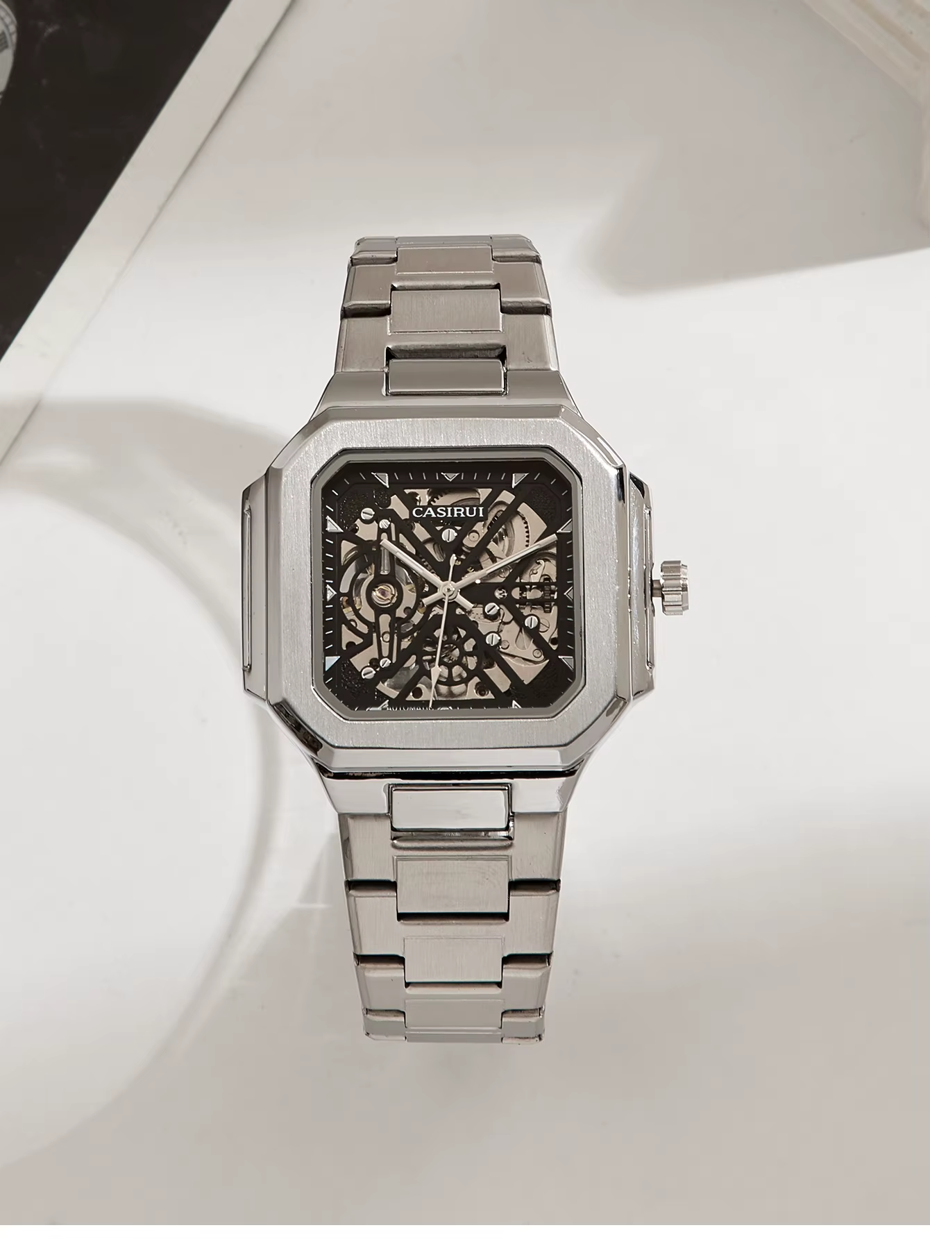 Design Heritage & Craftsmanship: CASIRUI draws its inspiration from classic French design principles, focusing on striking silhouettes and sophisticated detailing. The unique Square Alloy Case (mm thick) is perfectly complemented by the high-quality Stainless Steel Strap (mm width) secured by an integrated Butterfly Clasp.