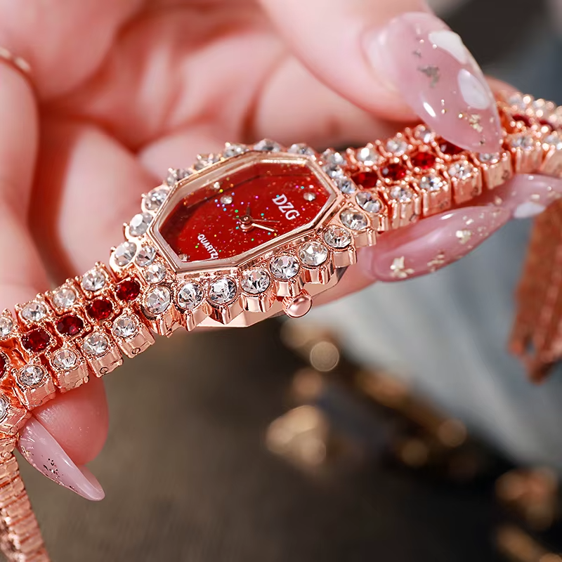 The DZG Serenity watch and bracelet set redefines accessory elegance with its artisanal design. The rectangular alloy watch case houses a minimalist dial with a practical automatic date function, while the accompanying bracelet is hand-strung with genuine semi-precious stones for a one-of-a-kind look. Secured with a discreet bracelet clasp, the set drapes fluidly on the wrist, offering a bohemian yet polished statement. Ideal for complementing casual or evening wear, the DZG Serenity embodies effortless sophistication and natural beauty.