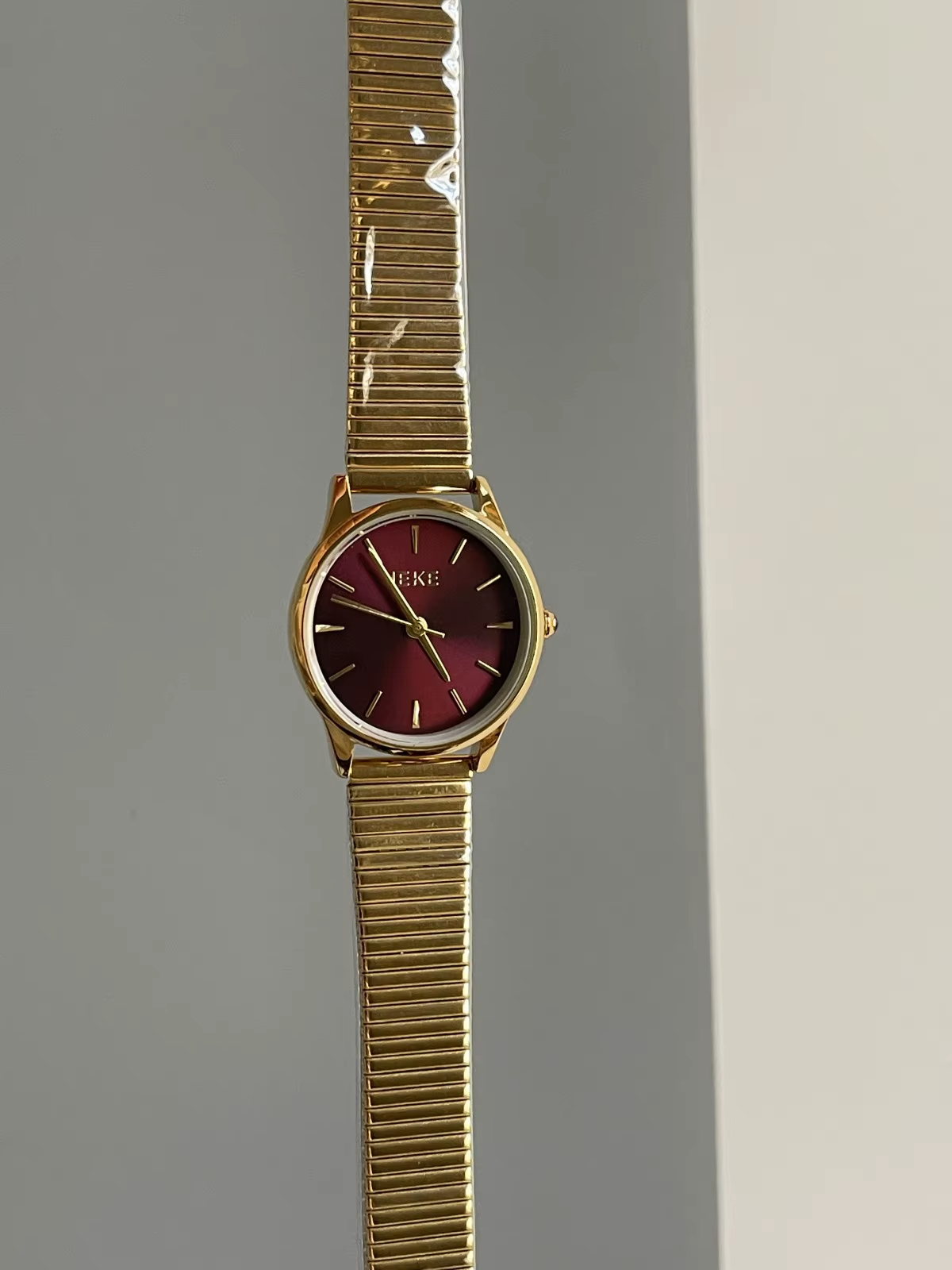 The IEKE 09 ladies’ watch combines vintage elegance with modern luxury, featuring a rich burgundy red dial housed in a polished alloy case. Paired with a sleek stainless steel band and powered by a precise quartz movement, this timepiece offers timeless sophistication for the discerning woman.