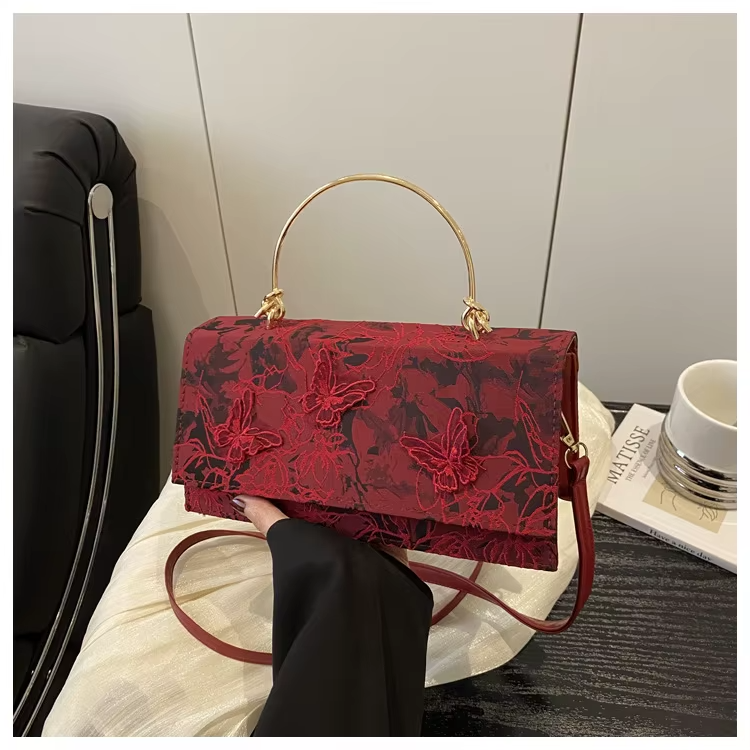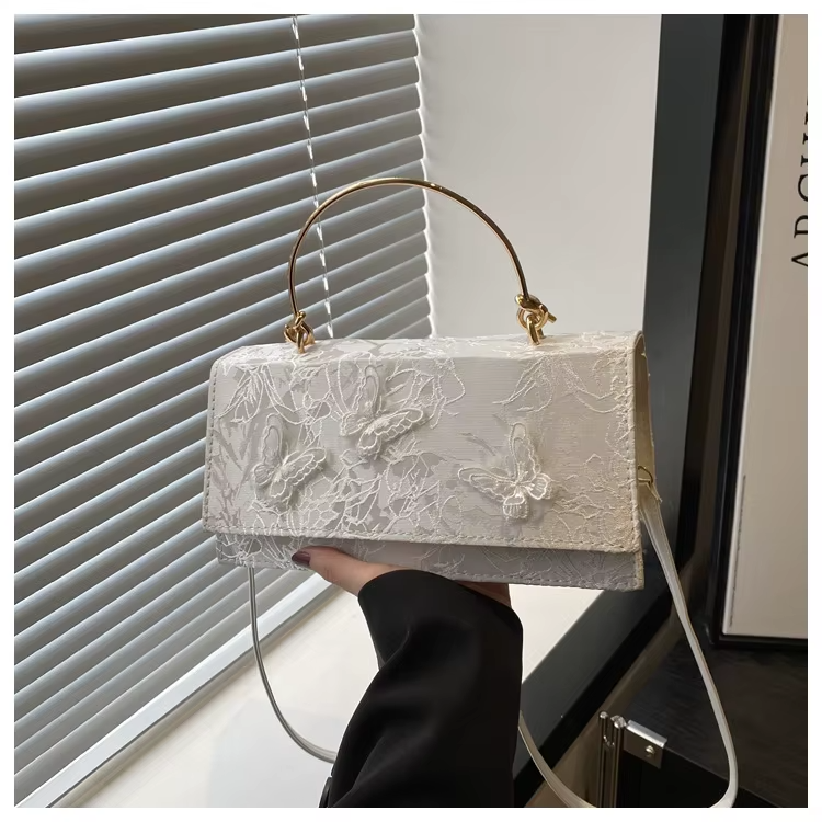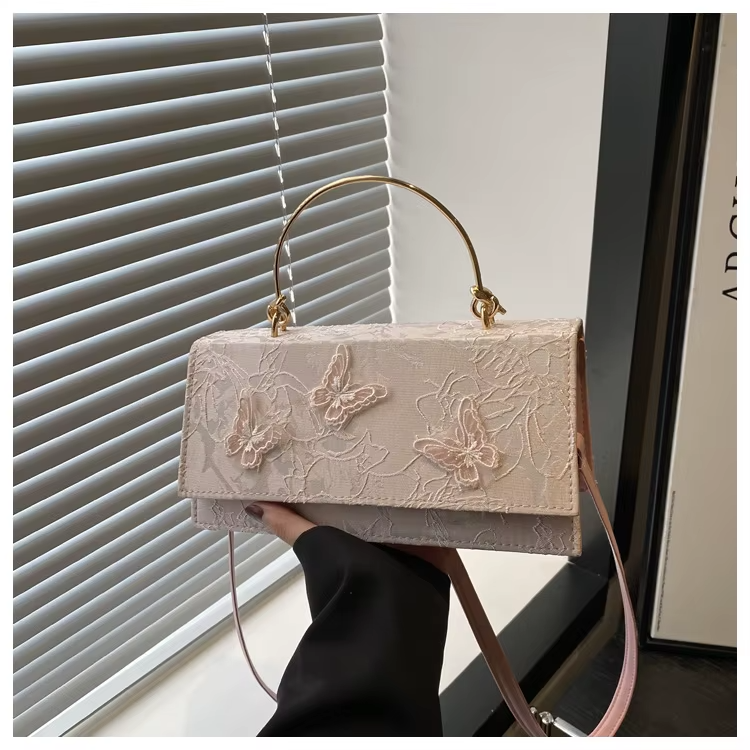 Sophisticated Design & Artisan Detailing: The bag’s clean, geometric lines are beautifully softened by intricate lace patterning and a charming butterfly decoration, lending a touch of romantic, English-inspired elegance. The dual carrying options—a sturdy top handle for a classic look and a detachable, adjustable strap for crossbody or shoulder wear—make it effortlessly adaptable for any occasion, from a day at the office to an evening out.