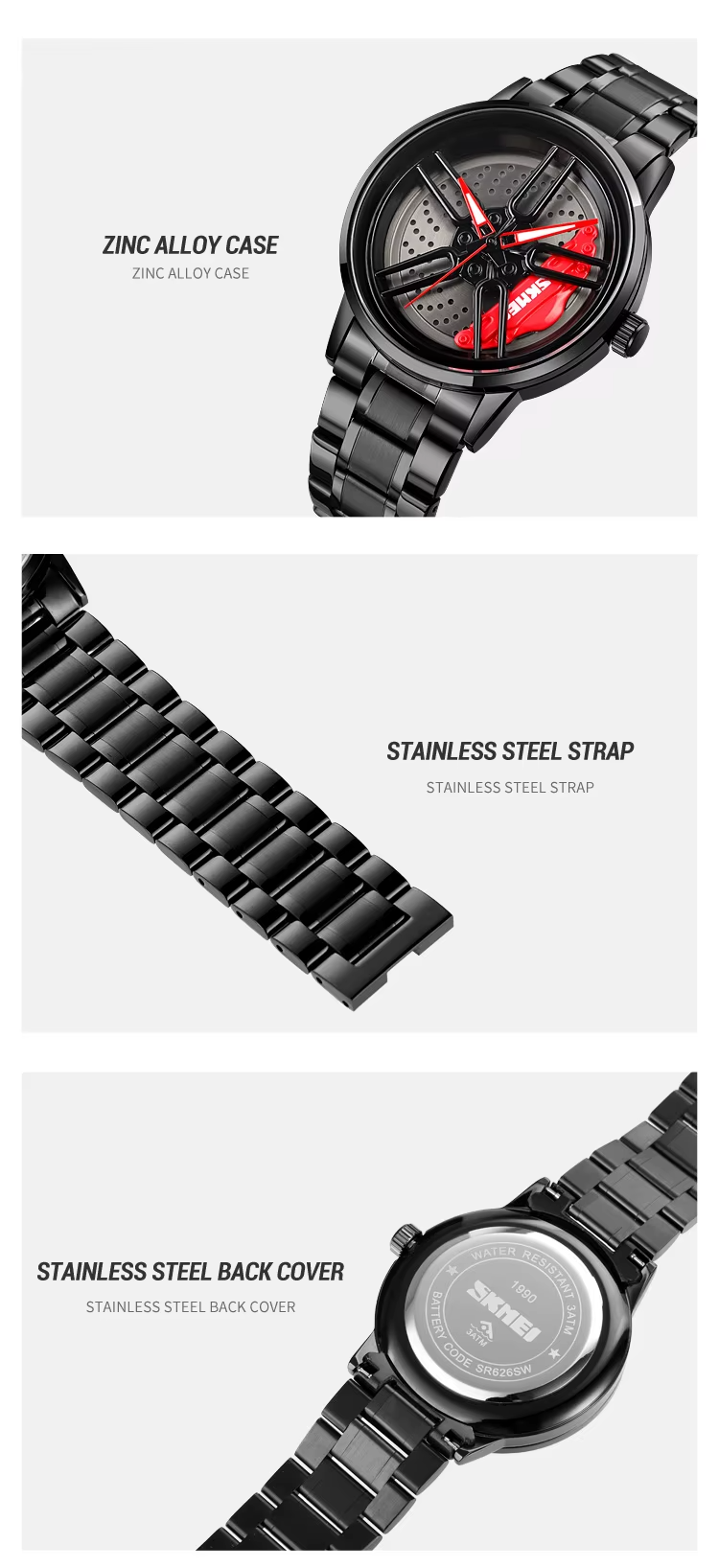 The SKMEI GT Series captures the essence of automotive engineering in a sophisticated wristwatch design. Drawing inspiration from high-performance vehicle wheels, this watch features a unique dial that echoes the precision and dynamism of automotive design.